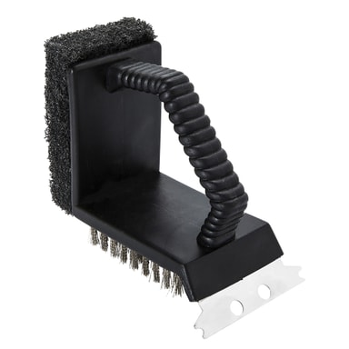 Denna smarta grillborste kommer hjälpa dig att hålla din grill i toppskick. Borsten har mässingsborstar som effektivt rengör ditt grillgaller. Stålullsidan rengör övriga delar av din grill och skrapan tar effektivt bort fastbränd mat mellan gallret.