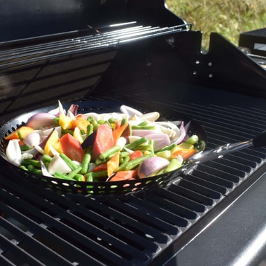 Grillkorgen är en grönsakspanna som får plats i kokgropen. I Grillkorgen kan du tillaga grönsakerna direkt på grillen utan att de fastnar eller ramlar mellan grillgallret.