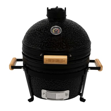 Dess kompakta storlek gör den idealisk för mindre utomhusutrymmen eller äventyr på språng som campingutflykter, utan att kompromissa med matlagningsytan. Tillverkad för att tåla elementen, säkerställer den hållbara keramiska kroppen och de rostfria ståldelarna lång livslängd och enkel underhåll, medan dess eleganta äggformade design ger en touch av elegans till den utomhusmiljön.