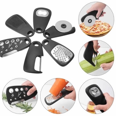 6-i-1 rullpizzaskärare konservöppnare Vitlöksmätare skalare Köksprylar