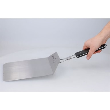 Läckra hemgjorda pizzor från egen ugn. Med den här professionella pizzaspaden från Alpina kan du enkelt ta ut pizzorna ur ugnen, de håller sig hela och du bränner inte fingrarna. Det bästa resultatet och säkert för dig. Spaden är gjord av slitstarkt rostfritt stål och handtaget är helt hopfällbart. Du diskar den helt enkelt i diskmaskinen efter användning och förvarar den enkelt. - Mått: 25 x 24 cm.