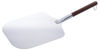 Stor pizzaspade i aluminium med trähandtag. Den stora ytan på 35,5 x 30,5 cm och det robusta, 28 cm långa handtaget gör pizzaspaden perfekt för att hantera även större pizzor och brödLäs mer om produkten