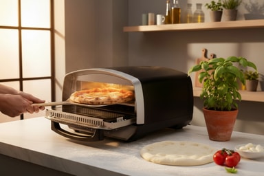Ugnen är utformad för att baka en hel 13" pizza och är perfekt för både enskilda måltider och större sällskap. Med flera tillagningslägen hanterar den enkelt olika pizzastilar - inklusive tunn botten, pan, napolitansk och New York. Den stödjer även mångsidiga ugnsfunktioner.
