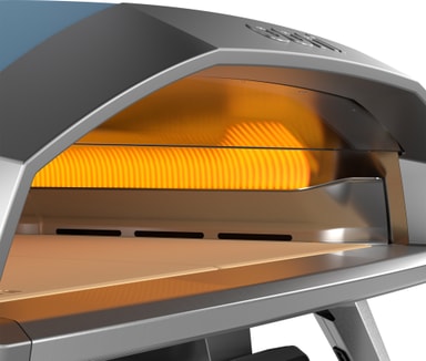 Detta är ugnens smarta värmesystem. Den använder två brännare och en speciell lågform som sprider värme jämnt över stenen. Det betyder att det inte finns några kalla fläckar, så din pizza eller mat tillagas jämnt hela vägen igenom..