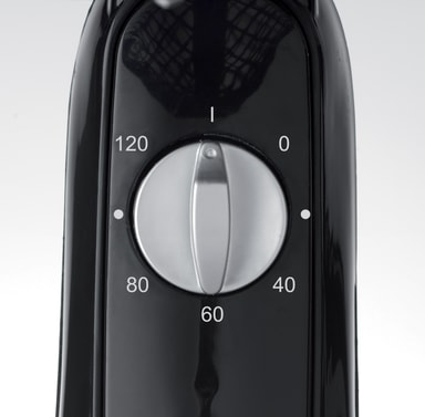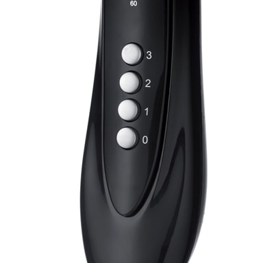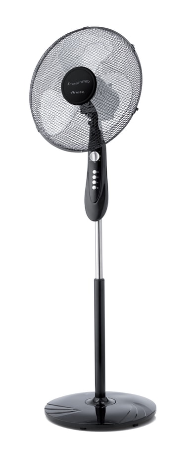 Golvstående fläkt med rund bas, kännetecknad av moderna och eleganta linjer som gör den lämplig för alla miljöer.