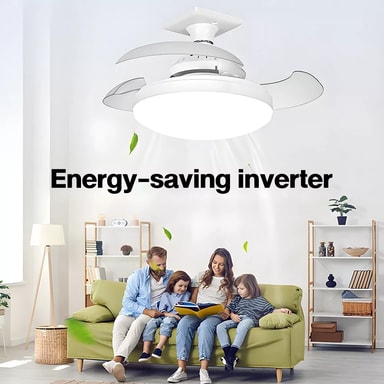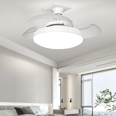 Fjärrkontroll / APP-kontroll E27 Base 3 hastigheter gömt blad fläktljus 48W Dimbar hushållstaklampa【Mångsidig 3-i-1-design】 Denna innovativa E27 takfläktlampa med skruvbas kombinerar en kraftfull fläkt, justerbar LED-belysning och en elegant design,Läs mer om produkten