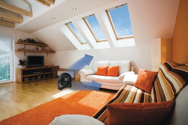 Kraftfull, svart turbo-fläkt som ger maximal kyleffekt tack vare lutbart huvud.