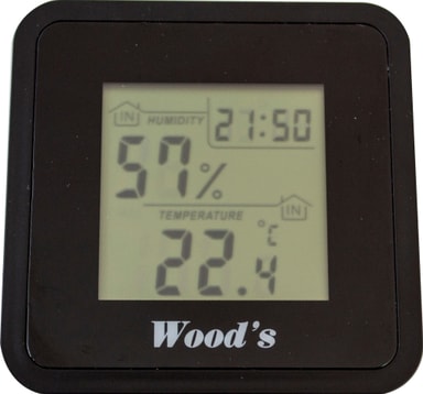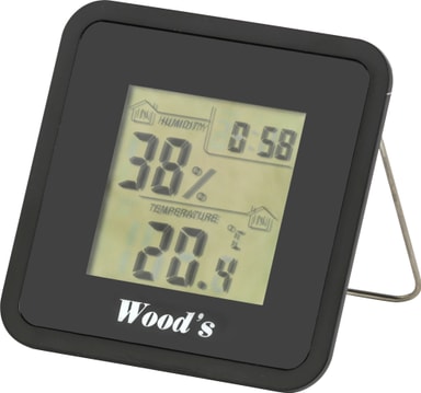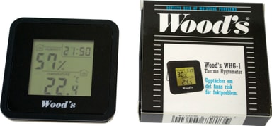 Med Woods hygrometer WHG-1 upptäcker du potentiellt höga luftfuktighetsnivåer, som du senare kan justera den med Woods SW-serie avfuktare. Hygrometern har en lättläst stor skärm som visar både luftfuktighet och temperatur.