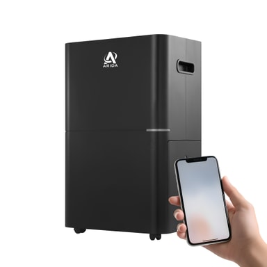 Styr önskad luftfuktighet och funktioner med en app på telefonen (Tuya). Detta är mycket praktiskt och något som många kommer att ha nytta av. Vill du inte använda appen, så kan allt även styras från kontrollpanelen på toppen av avfuktaren.