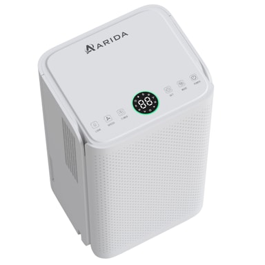 Arida Larvik är en modern luftavfuktare utvecklad för nordiska hem. Den kombinerar hög kapacitet med tyst drift och smart WiFi-styrning. Med sin kompakta och platsbesparande design passar den perfekt i badrum, tvättstuga och andra utrymmen där fukt är ett problem – utan att ta upp för mycket plats.