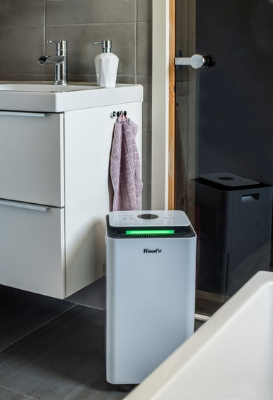 Woods luftavfuktare MRD12G med en stor kapacitet på 10 liter per dag är designad för badrum och tvättstugor på upp till 40m2. Den kommer med en bildskärm, praktiskt handtag och auto-off-funktion.Läs mer om produkten