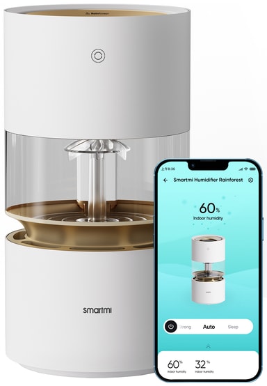 Låt Smartmi Rainforest luftfuktare SM1019 både sätta atmosfären i ditt rum och rensa luften runt dig tack vare dess flerskiktsfiltrering, smarta anslutningsmöjligheter, 200 ml/h kapacitet, 3l vattenbehållare, toppmonterad display och vacker lugnande design.