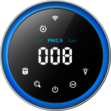 Apparaten är utrustad med en omgivande ljusring för en bra överblick över inställningarna och luftkvaliteten i rummet.