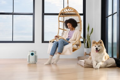 Denna luftrenare har en elegant vit design och är kompakt för att passa sömlöst in i vilket rum som helst. Den har en lättavläst LED-display för uppdateringar om luftkvaliteten i realtid. Den inkluderar även ett doftreglage.