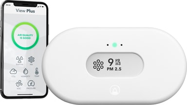 Vi tillbringar runt 90% av vår tid inomhus och View Plus hjälper dig hålla koll på luftens kvalitet. Omfattande luftkvalitetsmätare med sju sensorer som mäter radongas, luftburna partiklar (PM2,5), koldioxid (CO2), lättflyktiga organiska föreningar (VOC), luftfuktighet, temperatur och lufttryck. Perfekt för kök och vardagsrum där familjen samlas.