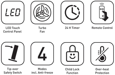 Den inbyggda turbofläkten förbättrar värmecirkulationen och hjälper rummet att värmas upp snabbare och jämnare.