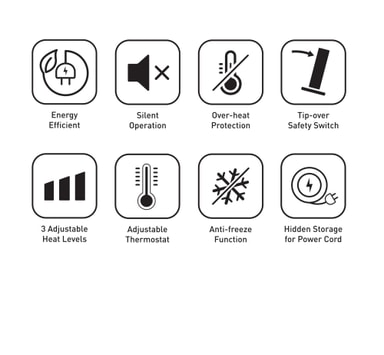 Utrustad med tippskydd och överhettningsskydd stängs elementet automatiskt av om det välter eller överhettas.