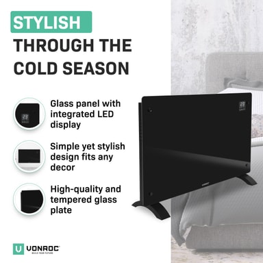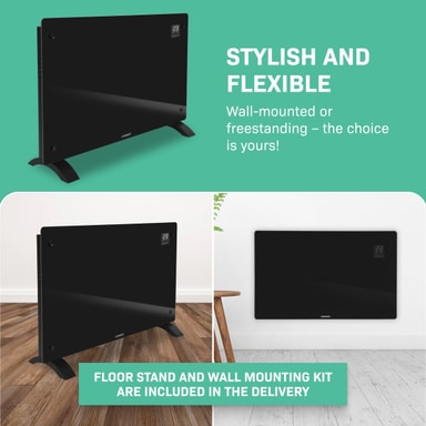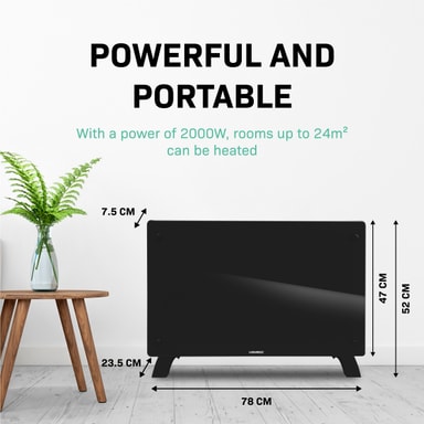 Effekten på 2000W ger tillräckligt med kraft för att värma utrymmen på upp till 24 m2 . De praktiska måtten (78 x 47 cm) gör den här enheten lätt att flytta så du kan värma upp vilket önskat rum som helst på nolltid. Det är perfekt när du arbetar hemifrån och inte vill ha centralvärme igång hela dagen. Vill du hellre montera elementet på väggen? Inga problem. Vi skickar med ett golvstativ samt en monteringssats. Vi lämnar valet upp till dig!