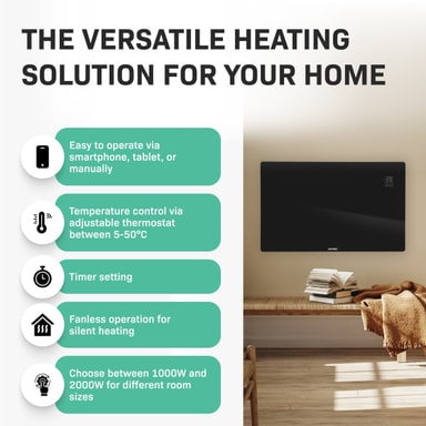 Den här värmaren är inte bara snygg utan den är även fullt utrustad med modern teknik. Med den kostnadsfria "Tuya Smart Life – appen" kan du justera alla inställningar du vill, vart du vill. Ställ in önskad temperatur med din smartphone eller surfplatta eller ställ in timern exakt som du vill.