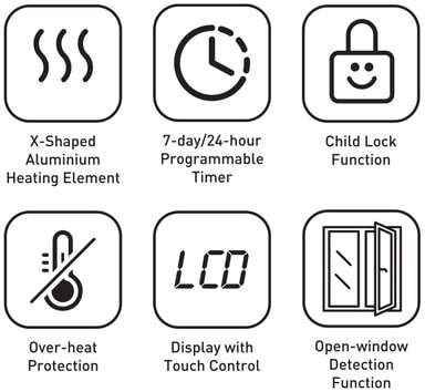 Du kan ställa in rumstemperaturen mellan 5°C och 35°C. Det digitala gränssnittet har en 7-dagars och 24-timmars programmerbar timer som låter dig anpassa värmeschemat efter dina rutiner.