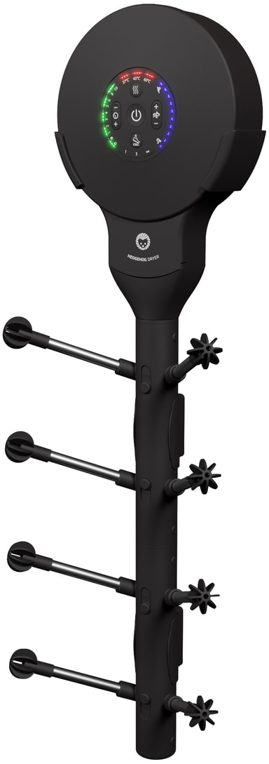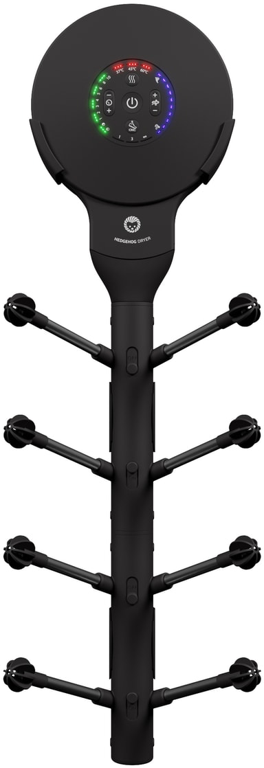 Håll dina skor och handskar torra och snyggt organiserade med Hedgehog Wall Ionic I3 skotork HHWBI3. Enheten på 650 watt kommer att torka dina skor och vantar samtidigt som de befrias från lukter med hjälp av dess joniska I3 och turbinteknologier och 5 hastighetsinställningar.