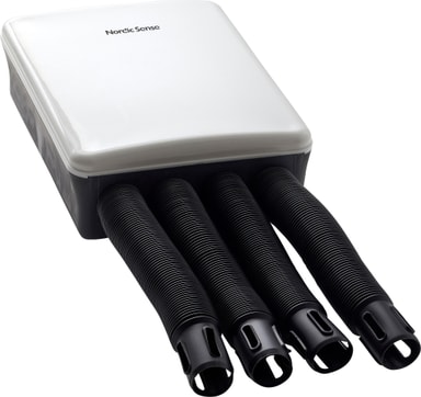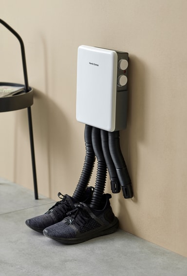 Håll dina skor torra tack vare väggmonterade Nordic Sense skotork 10687 som erbjuder en justerbar termostat, 2-timmars timer, sidokontrollpanel, fyra slangar och 350 W effekt. Ställ bara in temperaturen och tiden för att få dina skor perfekt torra och redo att bäras igen.