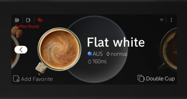 Oavsett om det är en spansk café cortado eller en italiensk ristretto kan du tack vare Coffee World enkelt skapa internationella kaffespecialiteter – med en knapptryckning. Med upp till 20 kaffevarianter från åtta länder kan du helt enkelt välja mellan en mängd olika kaffespecialiteter i Home Connect-appen, välja vilken typ av kaffe du vill ha och låta din Bosch-espressomaskin göra resten. Upptäck en hel värld av utsökt kaffe – i ditt eget hem.