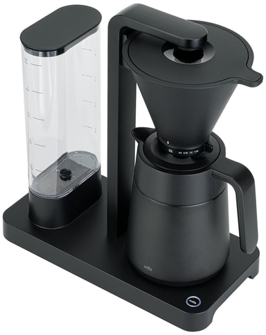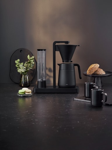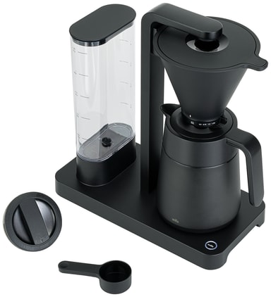 Med apparaten får du en termoskanna som både kan bryggas direkt i och tas med på vägen. Dess lock har 3 öppenhetsnivåer för rengöring, servering och förvaring.