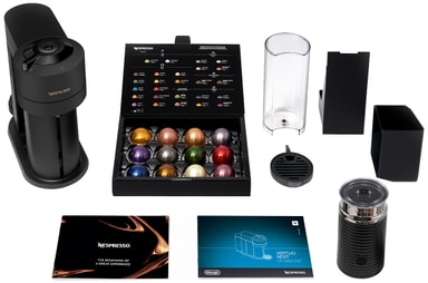 Detta paket har 12 olika kapslar och en Nespresso Aeroccino som hjälper dig att tillreda silkeslent mjölkskum för dina favoritdrycker.
