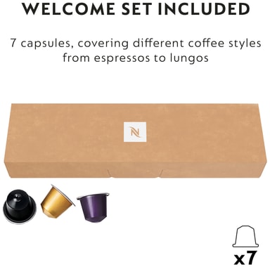 Denna kapselmaskin levereras med 7 kaffekapslar för att låta dig uppleva de fantastiska Nespresso-smakerna.