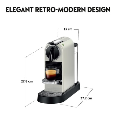 Eleganta och tidlösa NESPRESSO® CitiZ kaffemaskin av DeLonghi erbjuder dig snabbt och gott kaffe i vit design.