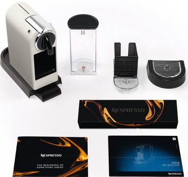 Eleganta och tidlösa NESPRESSO® CitiZ kaffemaskin av DeLonghi erbjuder dig snabbt och gott kaffe i vit design.Läs mer om produkten