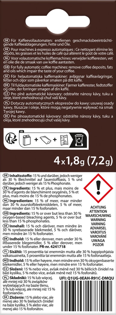 Regelbunden rengöring förlänger hållbarheten på din espressomaskin. Använd dessa tabletter i din espressomaskin för bästa smak och livslängd.