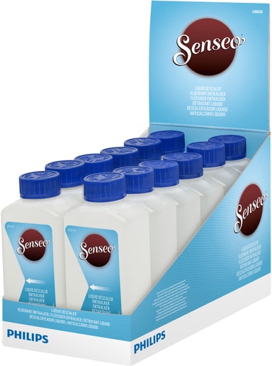 Senseo flytande avkalkningsmedel CA6520/00 passar alla Senseo kaffemaskiner. Medlet avkalkar och tar bort avlagringar som kan skada och avsätta smak i ditt kaffe. Med regelbundet användande kommer din kaffemaskin hålla längre och ge dig ett godare kaffe.
