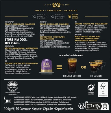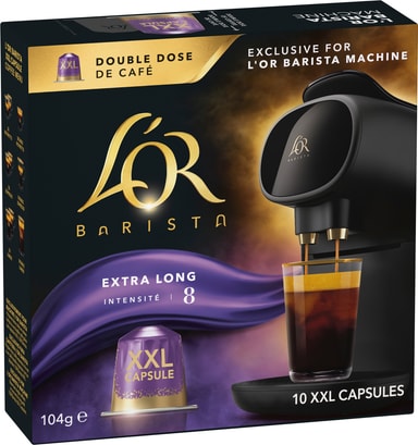 Med L'OR Barista Extra Long intensity 8 kaffekapslar kommer du att kunna omsluta din morgon i dess distinkt rostade och fruktiga arom och njuta av starten på något nytt till fullo. De 10 XXL-kapslarna är designade för användning med L'Or Barista kaffemaskin och varje kapsel låter dig förbereda antingen en dubbel Lungo Profondo eller två koppar Lungo Profondo samtidigt.