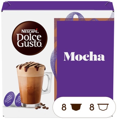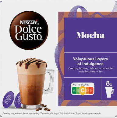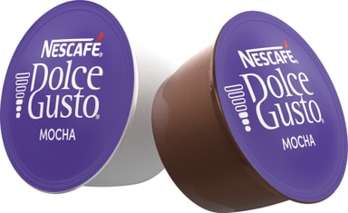 Kaffe med choklad? Eller choklad med kaffe? Experter har ännu inte bestämt sig. Vad spelar det för roll? Du kommer att älska våra NESCAFÉ Dolce Gusto Mocha kaffekapslar. Njut av en harmonisk kombination av läckra kakaotoner med krämig mjölk och en touch av fina aromatiska kaffenoter. Ditt ögonblick av lycka kan vara så enkelt som att njuta av den fantastiska smaken av våra Mocha-kapslar. Brygg din chokladglädje och njut av dess lätta lager av drömmande skum och dess djupt intensiva färg på morgonen, eftermiddagen eller kvällen. Helt enkelt oemotståndlig. Mocha är en riktig kaféfavorit, och våra snygga NESCAFÉ Dolce Gusto-maskiner är precis rätt för att förvandla den där Mocha-kapseln till en professionell upplevelse i barista-stil hemma.