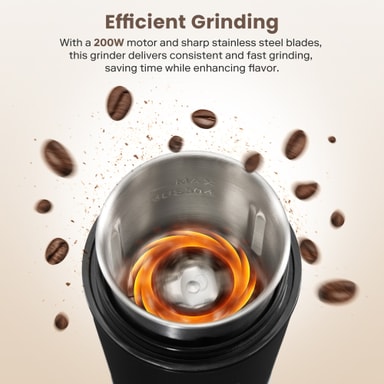 Driven av en robust 200W motor når kvarnen hastigheter på upp till 25 000 varv per minut. Detta säkerställer snabb och jämn malning, så att du kan spendera mindre tid på förberedelser och mer tid på att njuta av ditt kaffe.