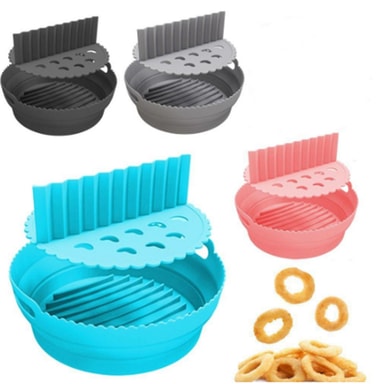 Rund form av livsmedelsgodkänd silikon. Den passar perfekt in i fritösen och förhindrar klibbiga och fastbrända matrester i din Air Fryer. Behållaren är återanvändbar och kan diskas i diskmaskin.