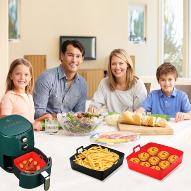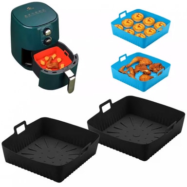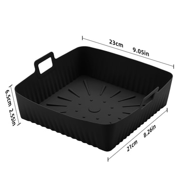 Skyddar din Airfryer: Genom att lägga maten i en behållare undviker du klibbiga och brända rester i din Airfryer. Skålen har en praktisk design med hög kant. Underlättar även att ta mat in och ut ur airfryern. Matbehållaren är också lämplig för användning i mikrovågsugnen.