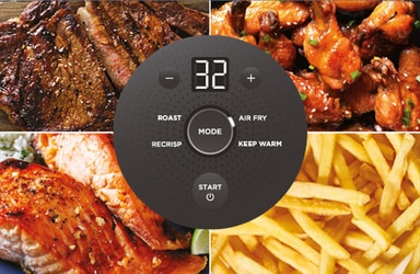 Crispi erbjuder fyra funktioner: Luftfritering, Ugnsstekning, Uppvärmning och Varmhållning. Dessa täcker vardagens matlagningsbehov, från krispiga snacks och rostade grönsaker till uppvärmning av rester eller varmhållning av måltider.