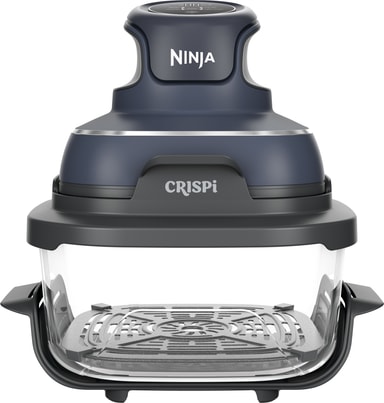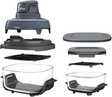 Ninja Crispi airfryer FN101EUGY är en kompakt 1700W airfryer som levereras med två glasbehållare: en på 1,4L för mindre måltider och en på 3,8L för familjestorlekar. Med funktioner som luftfritering, ugnsstekning, uppvärmning och varmhållning hanterar den både färska måltider och rester. Det värmetåliga glaset är PFAS-fritt, tål maskindisk och är utformat för att förbereda, laga, servera och förvara mat i samma behållare.