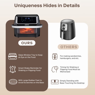 Skakindikatorn blinkar för att påminna dig om att skaka eller vända pommes frites och nuggets, vilket säkerställer att de får en gyllene, läcker krisp.