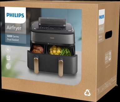 Upptäck Dual Basket Airfryers och anpassade recept i HomeID-appen. Få stegvis vägledning och hundratals smakrika måltider med skräddarsydda inställningar för din Airfryer.
