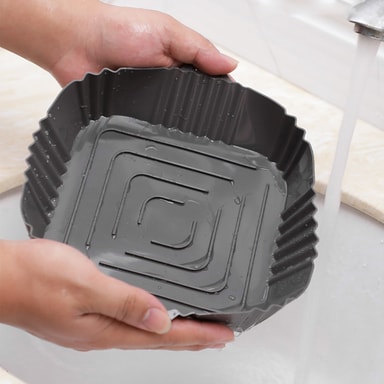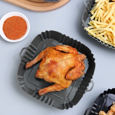 Skyddar din Airfryer: Genom att lägga maten i en behållare undviker du klibbiga och brända rester, fett och olja i fritösen. Skålen har en praktisk design med hög kant som underlättar att ta maten in och ut ur fritösen. Även perfekt att använda i mikrovågsugnen.