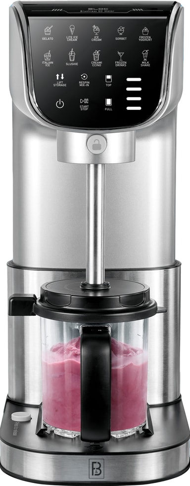 F&B Freezemix glassmaskin 72333 drivs av en 500-watts motor, har en 560 ml burk och 10 förinställda program för gelato, sorbet, glass, slushies, fryst yoghurt och mer. Med en användarvänlig pekskärm och diskmaskinssäkra delar är det ett bekvämt och kladdfritt sätt att njuta av glass när som helst.