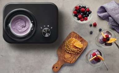 Tack vare enhetens praktiska kylfunktion behåller din hemlagade glass sin temperatur och konsistens i upp till 1 timme.
