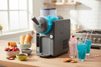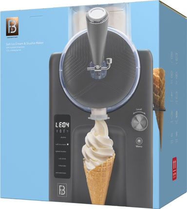 Njut av glass på 40-50 min med F&B Soft Ice & Slushie-maskin, 150W. Den har en 2L blandningsbehållare för bättre kylning och 1,5L slushie-kapacitet, nog för 8 personer.Läs mer om produkten