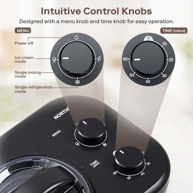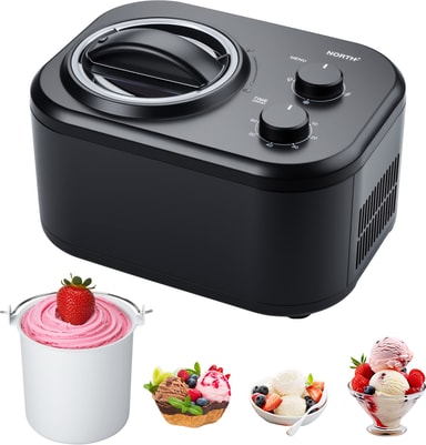 North glassmaskin 205103 är en helautomatisk glassmaskin med inbyggd kompressor, vilket eliminerar behovet av förfrysning. Skapa krämiga desserter på 60 minuter med den löstagbara 1,0-litersskålen, intuitiva kontroller och tyst drift. Stilren och mångsidig, perfekt för enkla hemlagade godsaker.