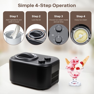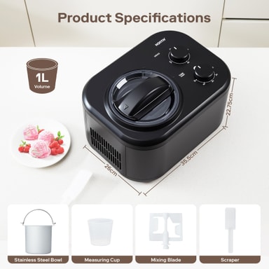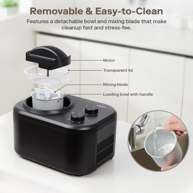 En löstagbar skål på 1 liter är perfekt för att vispa upp färsk, krämig glass på bara 60 minuter. Den kompakta kapaciteten är idealisk för små satser, vilket garanterar läckra hemlagade godsaker för enskilda personer eller små sällskap.