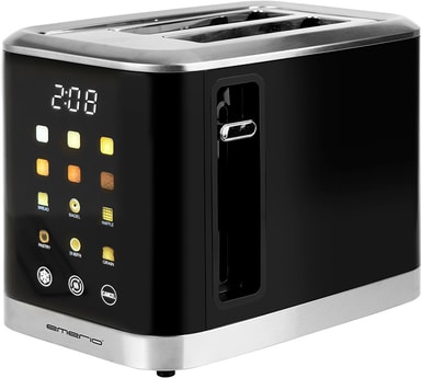 Gör perfekta rostat bröd med Emerio brödrost TO-132743. De intuitiva touchkontrollerna och digitala displayen gör användningen enkel, medan den automatiska uppfällningen och stoppknappen garanterar säkerhet och bekvämlighet. Den uppfyller även GS A13-standarden, vilket garanterar kvalitetskonstruktion och överensstämmelse med europeiska säkerhetsföreskrifter.